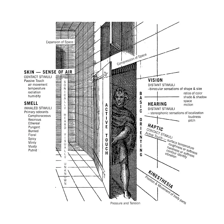 Illustration depicting the range of senses; 'Sensory Design'; Joy Monice Malnar and Frank Vodvarke; University of Minnesota Press; 2004